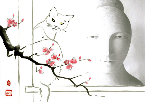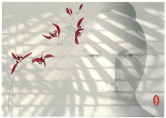 Each of these paintings is from a limited edition of 50 prints. All have been reproduced archivally to last at least 80 years behind glass and not in direct sunlight. Each print has been stamped individually with the red seals and is numbered and signed. The choice and position of the seals vary with each print and may not necessarily be the same as the image depicted on this page. I choose and place the stamps on each print according to my whim. Prices vary depending on the complexity and size of the piece, as well as the quality of the paper, which ranges from 185 gsm watercolour paper to 310 gsm "vellum" quality paper. |